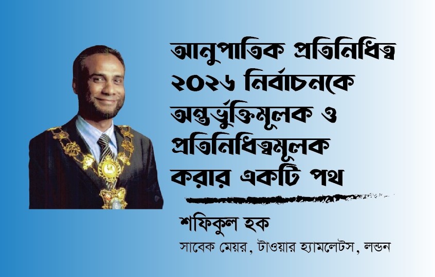 এই প্রস্তাব একদিকে যেমন গণতন্ত্রকে শক্তিশালী করবে, তেমনি নতুন রাজনৈতিক সংস্কৃতির জন্ম দেবে—যেখানে সহাবস্থান, অংশগ্রহণ এবং প্রতিনিধিত্ব হবে নির্বাচন ব্যবস্থার মূল ভিত্তি। ২০২৬ সালের নির্বাচনকে সামনে রেখে এখনই সেই সাহসী ও ভবিষ্যতমুখী সিদ্ধান্ত নেওয়ার সময়।
